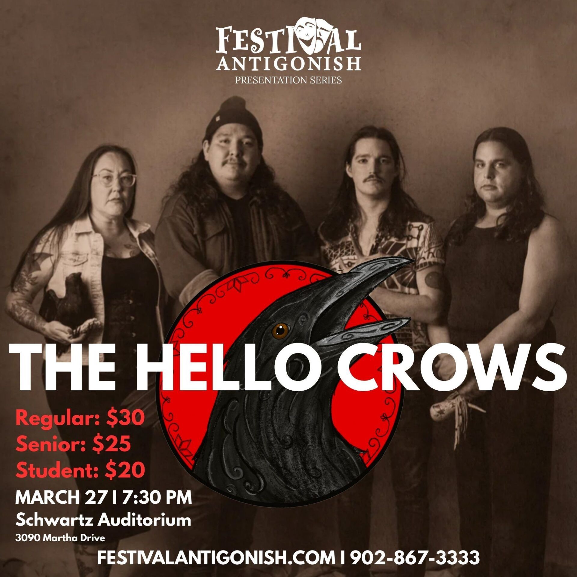 Love U2 is the first in a series of concerts being presented over this Winter and Spring. Theatre Antigonish and partners are bringing you two community shows with Love U2 in February and Misfits Musical Cabaret on April 1st and 2nd. Auditions are currently underway for the cabaret, and we will be sharing all the details with you soon! Festival Antigonish and partners will present The Hello Crows in Concert on March 27th at Schwartz Auditorium. Emerging from the rich cultural landscape of their Wabanaki homeland, New Brunswick, The Hello Crows are a powerful Indigenous collective, whose songs and stories are woven with the threads of personal experiences, resilience, and a deep connection to their communities and culture. Tickets for The Hello Crows are on sale now at festivalantigonish.com.