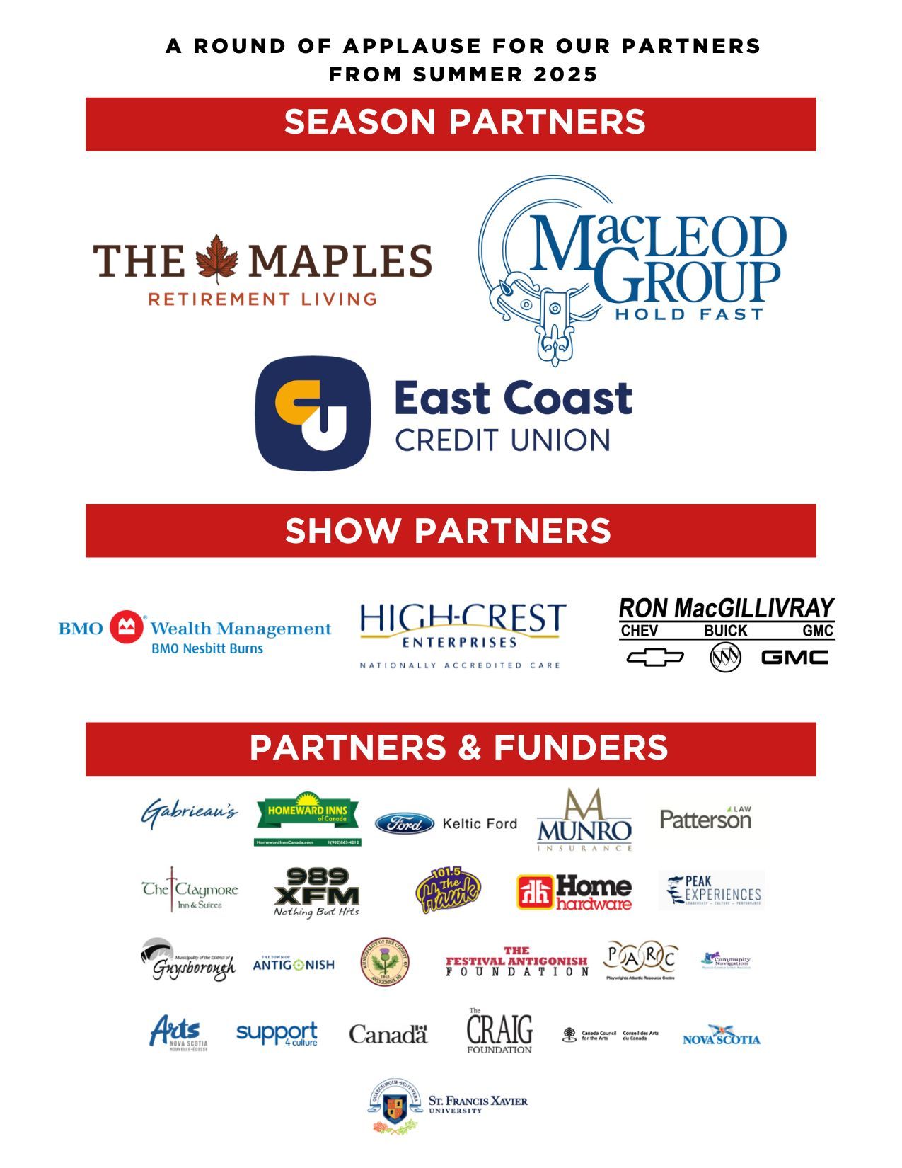 Season Partners receive visibility across the entire Festival Antigonish season through print, digital, and on-site recognition.